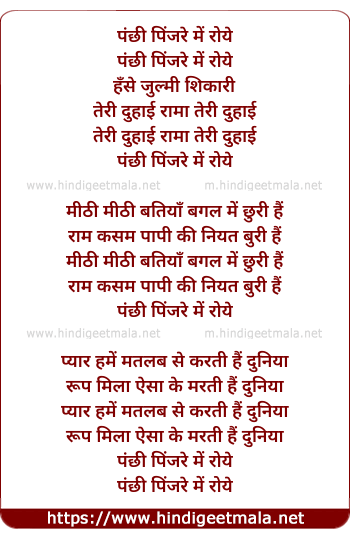 Lyrics of Panchi Pinjare Me Roye - पंछी पिंजरे में रोये