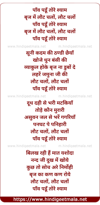 Lyrics of Paon Padoon Tore Shyam - पाँव पडूँ तोरे श्याम