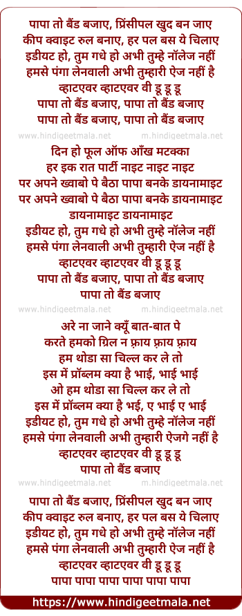 Lyrics of Papa Toh Band Bajaye - पापा तो बैंड बजाये