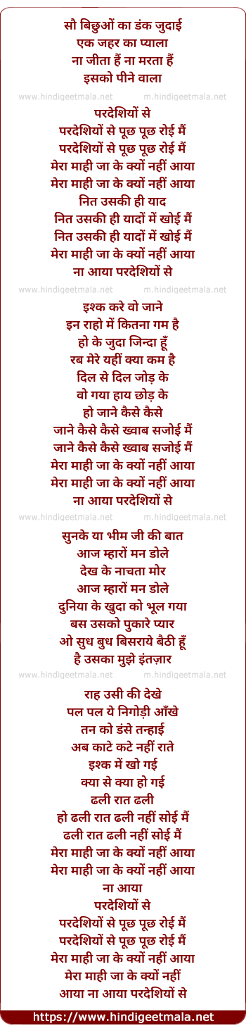 Lyrics of Paradesiyon Se Puchh Puchh Roi Main - परदेशियों से पूछ पूछ रोई मैं