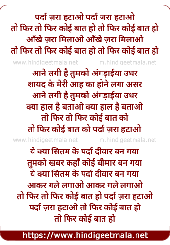 Lyrics of Parda Zara Hatao - पर्दा ज़रा हटाओ