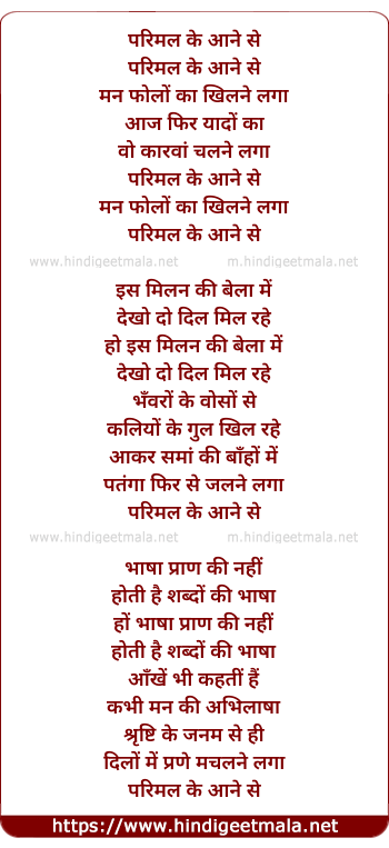 Lyrics of Parimal Ke Aane Se - परिमल के आने से