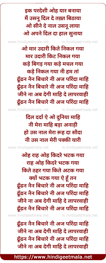 dhoondhan nain bichare ni aaj parinda maahi