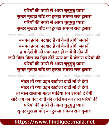 Lyrics of Pariyo Ki Nagri Se Aaya - परियों की नगरी से आया