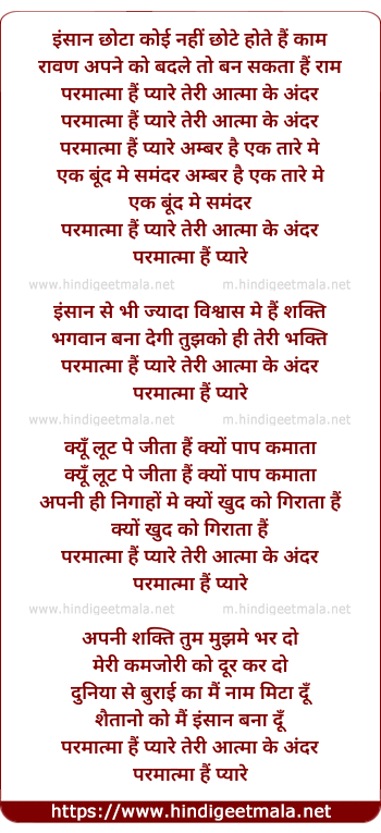 Lyrics of Parmatma Hai Pyare Teri Atma Ke Andar - परमात्मा हैं प्यारे तेरी आत्मा के अंदर