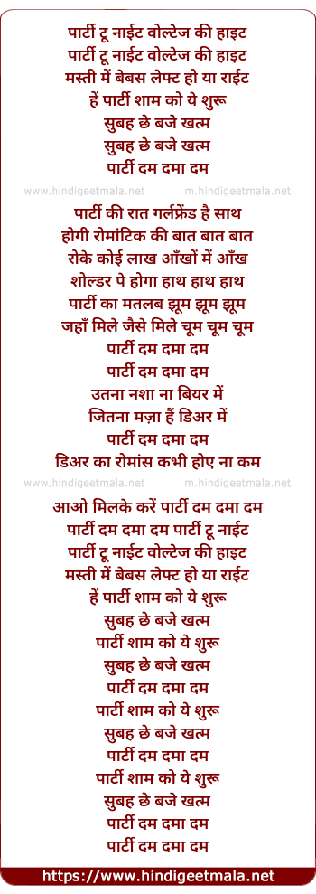 Lyrics of Party Dam Dama Dam - पार्टी दम दमा दम