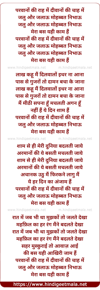 Lyrics of Parwano Ki Raah Me Deewano Ki Chaah Me - परवानों की राह में दीवानों की चाह में