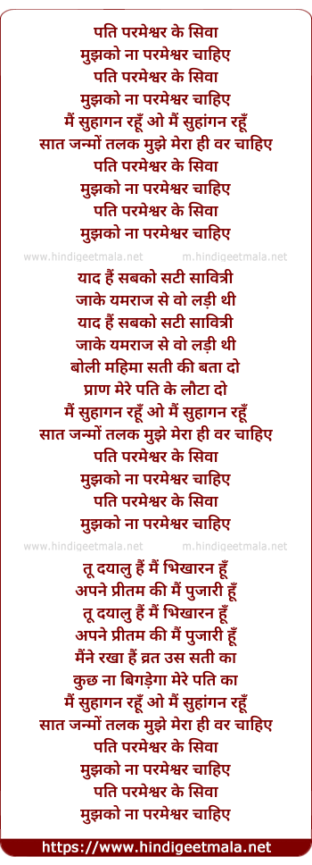Lyrics of Pati Parmeshwar Ke Siwa Mujhko - पति परमेश्वर के सिवा मुझको