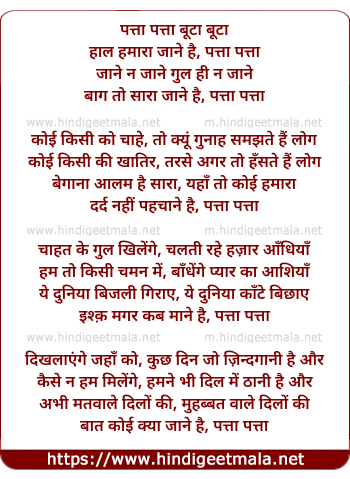 Patta Patta Buta Buta, Haal Hamara Jane Hai - पत्ता पत्ता बूटा बूटा, हाल हमारा जाने है