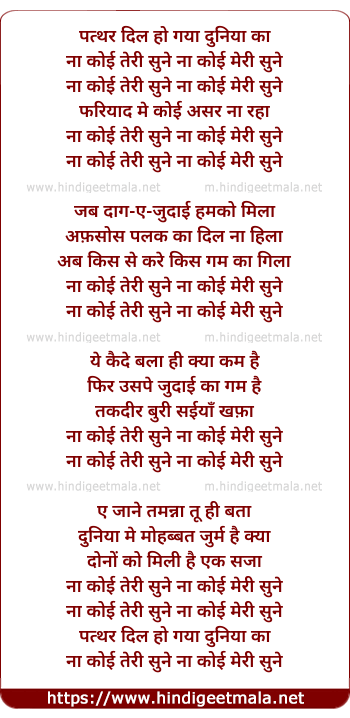 Lyrics of Patthar Dil Ho Gaya Duniya Ka - पत्थर दिल हो गया दुनिया का