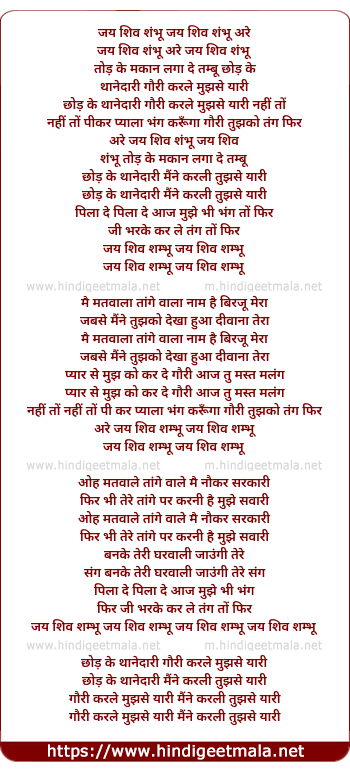 nahi to nahi to pikar pyaala bhang karunga gori tujhko tang fir