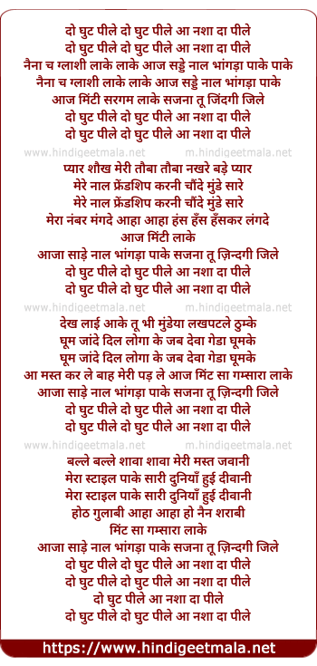 Lyrics of Peele Peele Do Do Ghunt - पीले पीले दो दो घुट