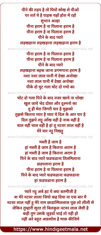 Lyrics of Peena Haraam Hai - पीना हराम है