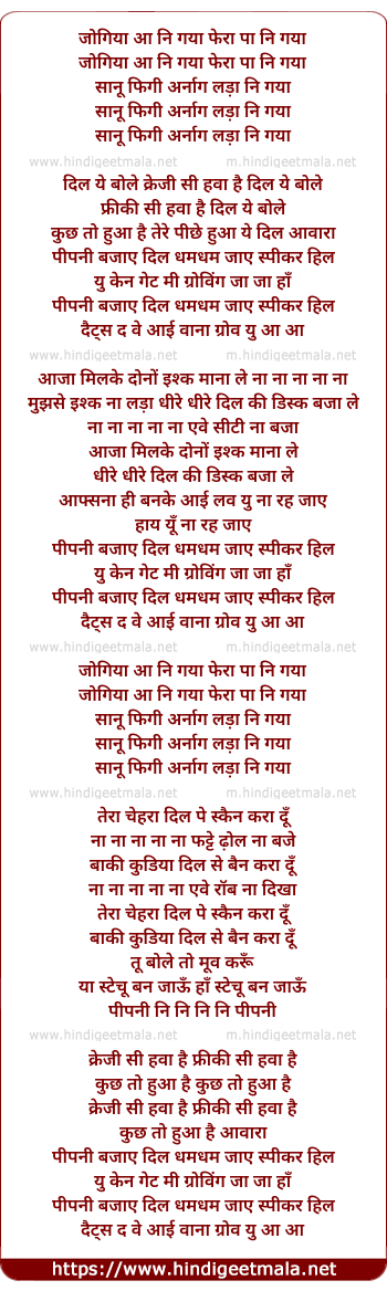 Lyrics of Peepni Bajaye Dil, Dham Dham Jaye Speaker Heel - पीपनी बजाए दिल, धम धम जाए स्पीकर हिल