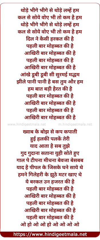 Lyrics of Pehali Baar Mohabbat Ki Hai - पहली बार मोहब्बत की है