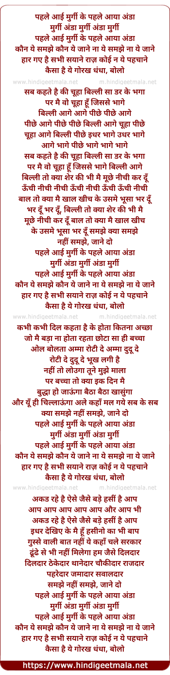 Lyrics of Pehle Aayi Murgi Ke Pehle Anda - पहले आई मुर्गी के पहले आया अंडा