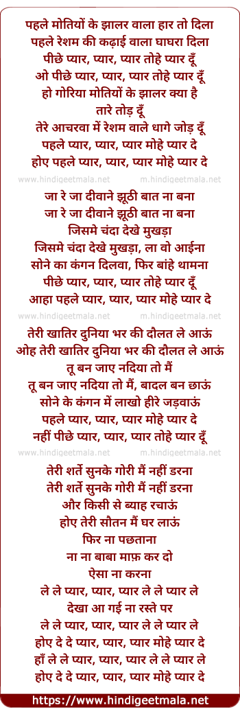 pehle pyaar, pyaar, pyaar mohe pyaar de