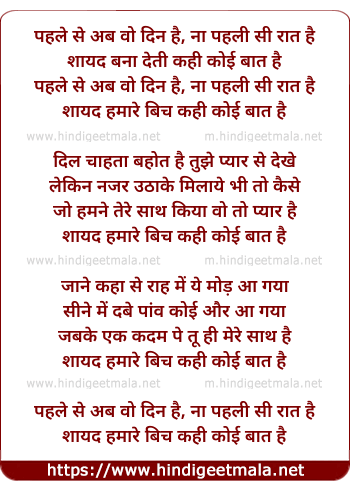 pehle se ab wo din hai, naa pehli si raat hai