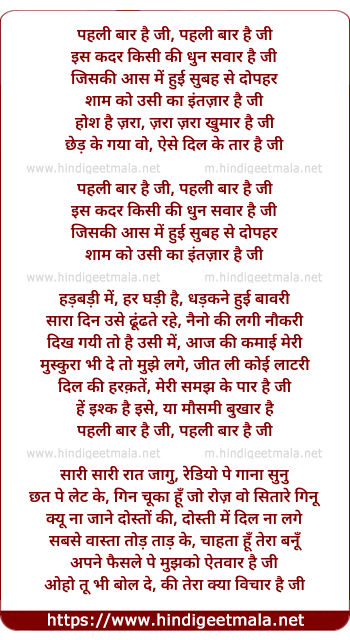 Poetic Translation - Lyrics of Pehli Baar - पहली बार