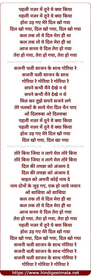 Lyrics of Pehli Nazar Me - पहली नज़र में