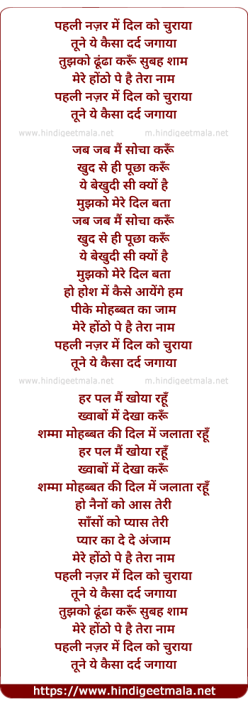 Lyrics of Pehli Nazar Me Dil Ko - पहली नज़र में दिल को