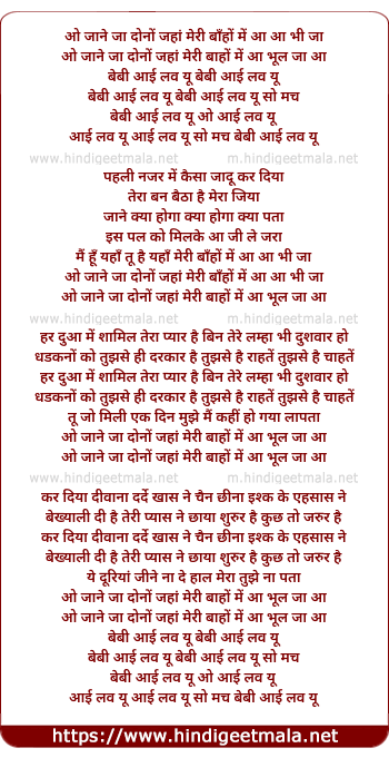 Lyrics of Pehli Nazar Me (Lounge Mix) - ओ जाने जा दोनों जहां मेरी बाँहों में आ आ भी जा