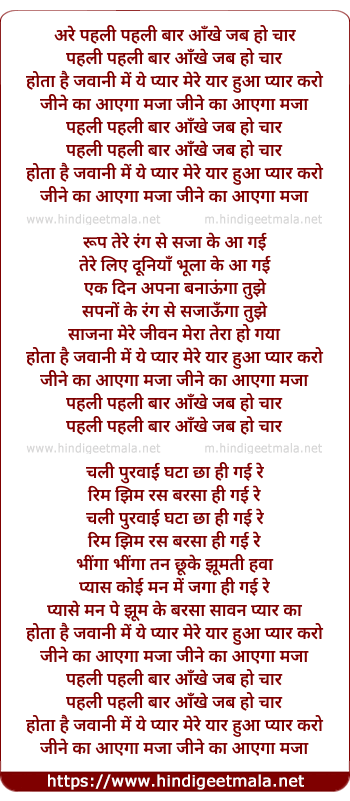 are pahli pahli bar aankhe jab ho char