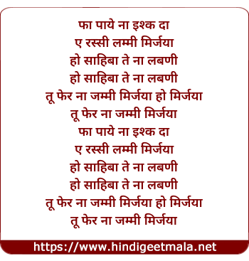 Lyrics of Phaa Paye Naa Ishq Da - फा पाये ना इश्क दा