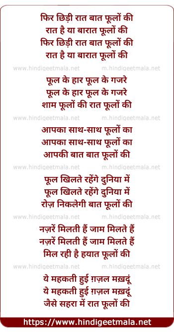 Lyrics of Phir Chhidi Raat Baat Phulon Ki - फिर छिड़ी रात बात फूलों की