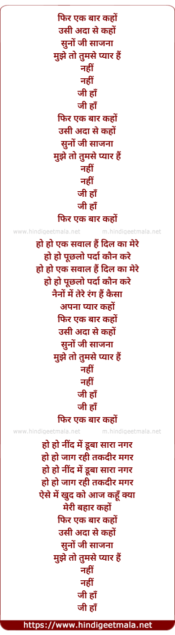 Lyrics of Phir Ek Baar Kaho Usi Ada Se Kaho - फिर एक बार कहों उसी अदा से कहों