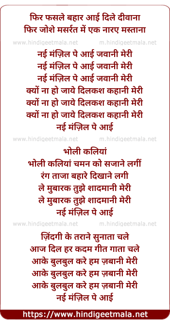 Lyrics of Phir Faasale Bahaar Aayi - फिर फसले बहार आई दिले दीवाना