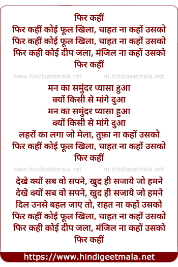 Lyrics of Phir Kahin Koi Phool Khila, Chahat Na Kaho Usko - फिर कहीं कोई फूल खिला, चाहत ना कहों उसको