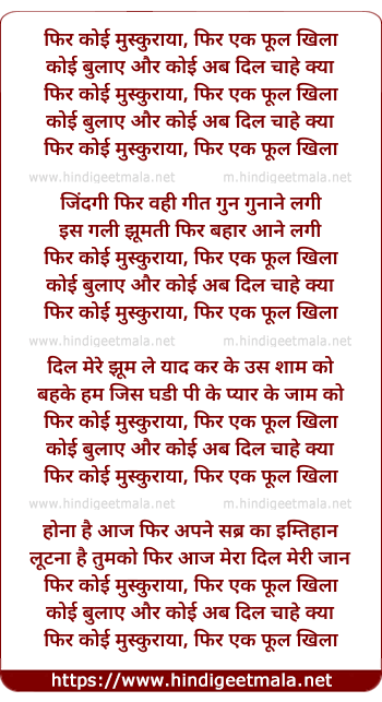 Lyrics of Phir Koyi Muskaraya - फिर कोई मुस्कुराया