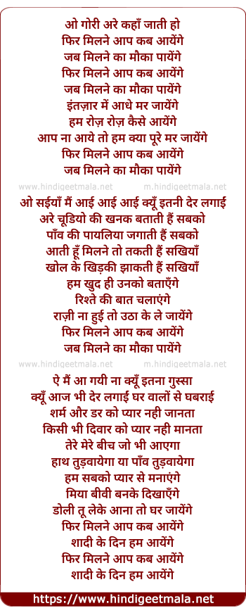 Lyrics of Phir Milne Aap Kab Aayenge - फिर मिलने आप कब आयेंगे