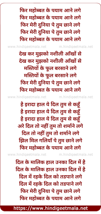 Lyrics of Phir Mohabbat Ke Payaam Aane Lage - फिर महोब्बत के पयाम आने लगे