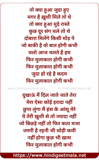Lyrics of Phir Mulaaqat - फिर मुलाकात