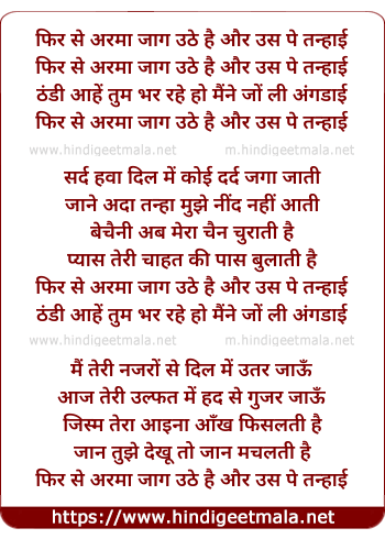 Lyrics of Phir Se Arman Jaag Uthe Hai - फिर से अरमा जाग उठे है