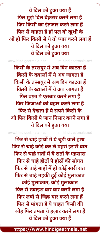 Lyrics of Phir Se (Remix) - ये दिल को हुआ क्या हैं