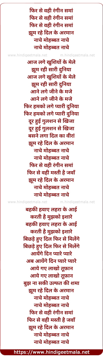 Lyrics of Phir Se Wahi Rangin Sama - फिर से वही रंगीन समां