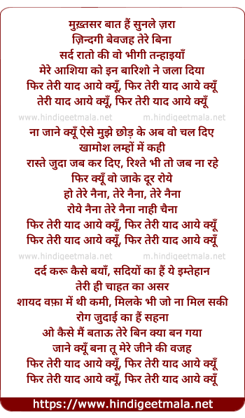 phir teri yaad aaye kyu, phir teri yaad aaye kyu
