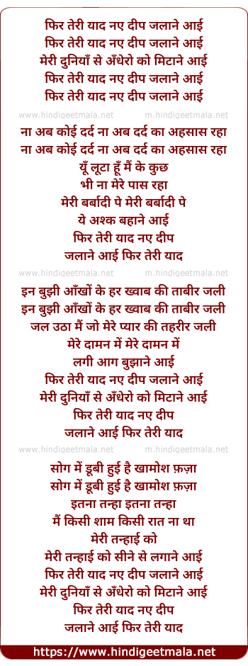 Lyrics of Phir Teri Yad Naye Deep Jalane Aayi - फिर तेरी याद नए दीप जलाने आई