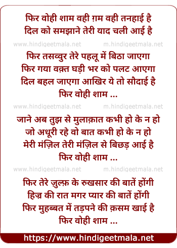 Phir Wohi Sham, Wahi Gham, Wahi Tanhai Hai - फिर वोही शाम, वही ग़म, वही तनहाई है