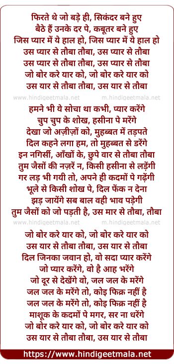 Lyrics of Phirate The Jo Bade Hi Sikandar Bane Hue - फिरते थे जो बड़े ही सिकंदर बने हुए