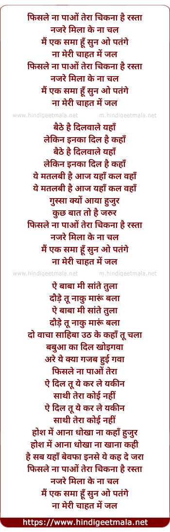 Lyrics of Phisle Na Pao Tera - फिसले ना पाओं तेरा