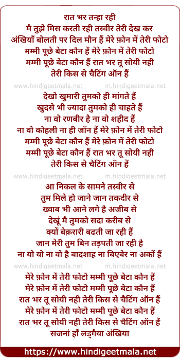 Lyrics of Phone Mein Teri Photo - फोन में तेरी फोटो