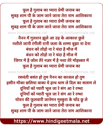 Lyrics of Phool Hai Gulab Ka - फूल है गुलाब का