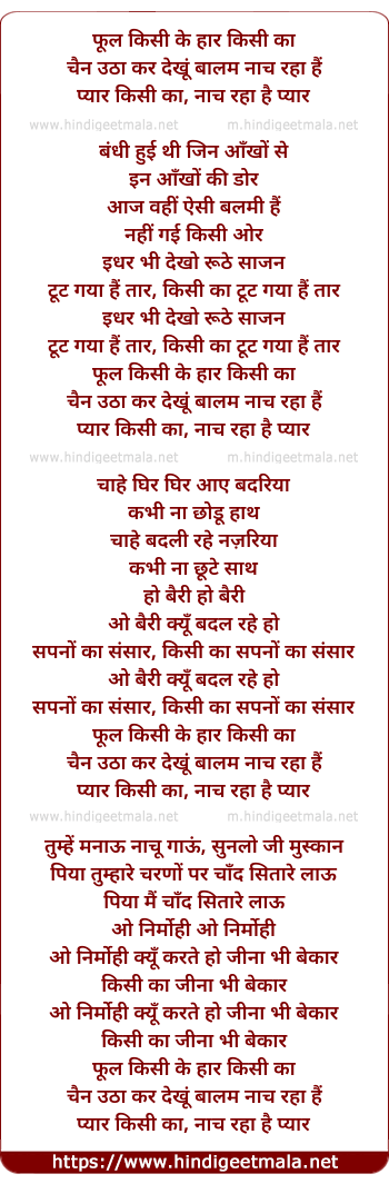 Lyrics of Phool Kisi Ke Haar Kisi Kaa - फूल किसी के हार किसी का
