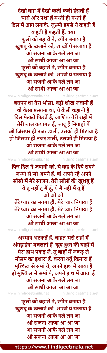 Lyrics of Phoolo Ko Baharo Ne - फूलो को बहारों ने