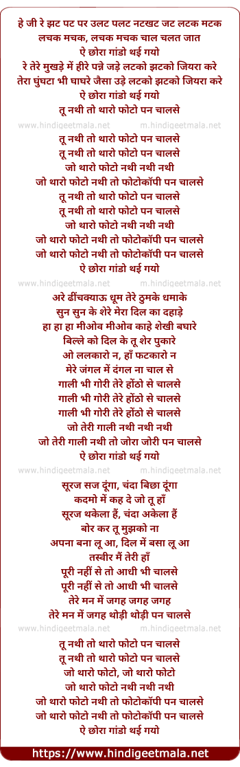 Lyrics of Jo Thaaro Photo Nathi To Photocopy Pan Chalse - जो थारो फोटो नथी तो फोटोकॉपी पन चालसे