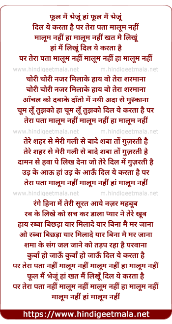 Lyrics of Phul Mai Bheju Dil Ye Karta Hai - फूल मैं भेजू दिल ये करता है